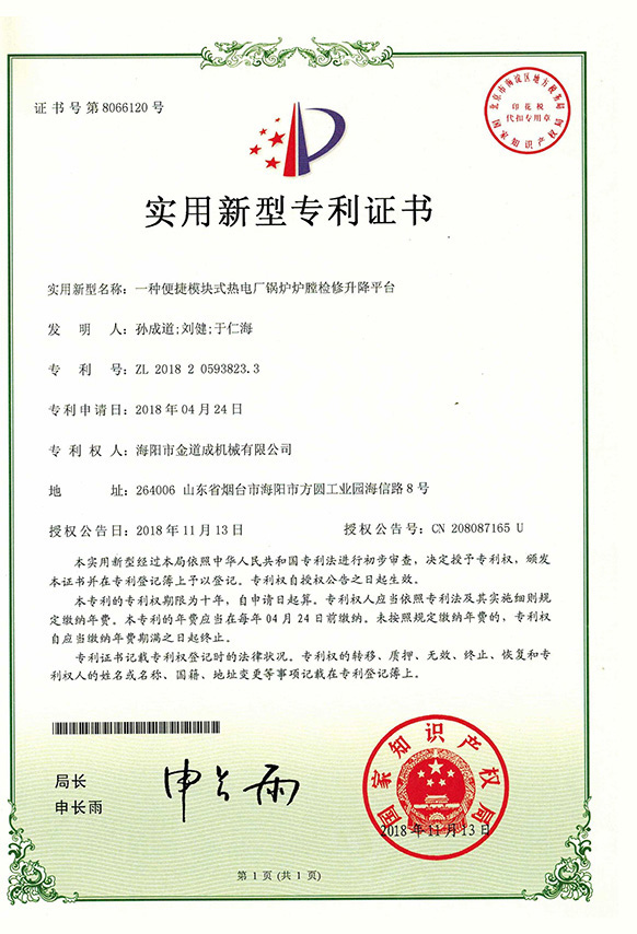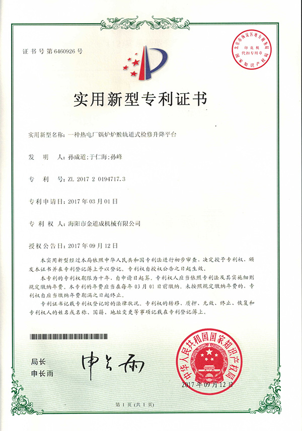 公司成立于2008年,年產(chǎn)“鍋爐爐膛檢修升降平臺”100余臺套的能力。自主研發(fā)的下支撐折疊式GJPT系列熱電廠鍋爐爐膛檢修升降平臺,于2016年獲得行業(yè)首項國家專利保護;經(jīng)過數(shù)年的發(fā)展,為各種型號煤粉鍋爐和循環(huán)流化床鍋爐的爐膛檢修,提供出一系列門類齊全的檢修平臺設(shè)計方案,先后為國家能源集團、華潤電力、大唐集團、晉煤集團、益海嘉里集團公司、嘉吉糧油公司、中糧集團公司、山東時風集團、阜豐生物科技、晉煤集團等400余家公司設(shè)計、定制了鍋爐爐膛檢修升降平臺。